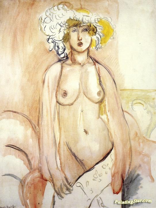 Antoinette with Feathered Hat, Nude Torso Standing, Art Painting by Henri Matisse