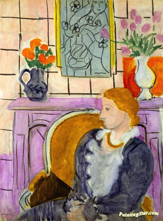 Blue Dress in Ocher Armchair, Art Painting by Henri Matisse