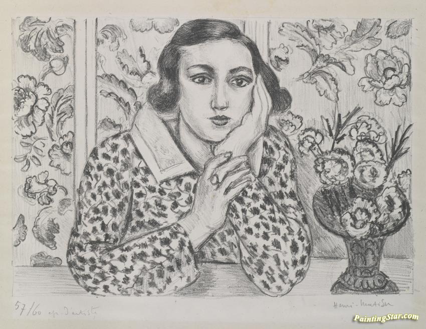 Jeune Fille Accoudee Au Paravent Fleuri, Art Painting by Henri Matisse