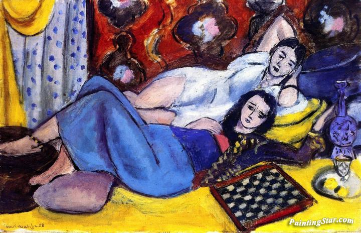 Models Resting, Ornamental Background and Checker Board, Art Painting by Henri Matisse