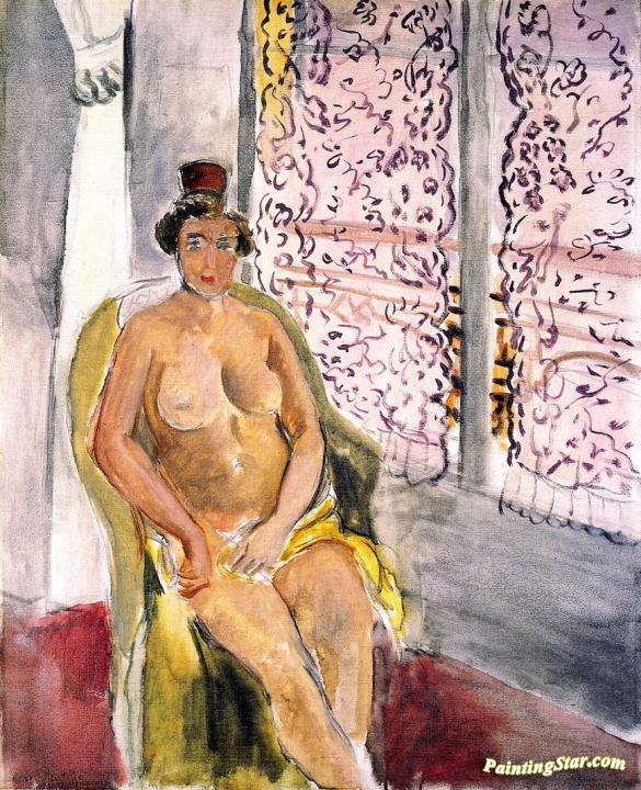 Nude with a Spanish Comb, Seated by a Curtained Window, Art Painting by Henri Matisse