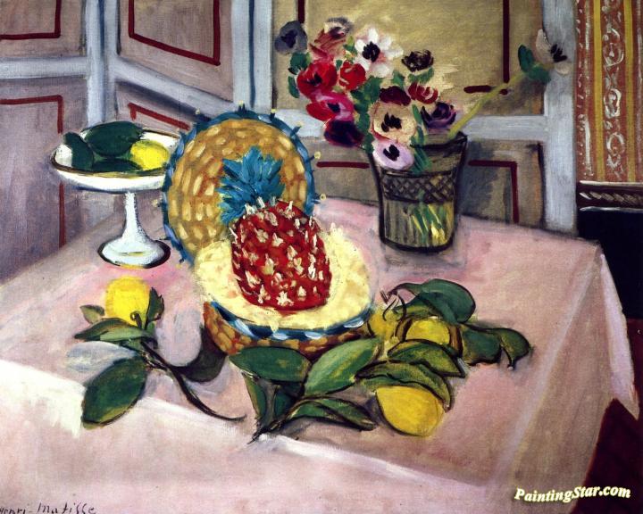 Pink Tablecloth, Lemons and Anemones, Art Painting by Henri Matisse