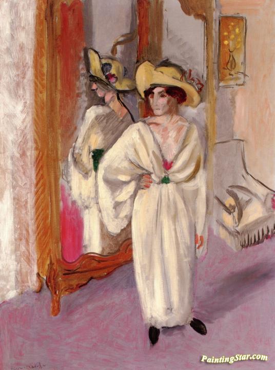 Woman in White in front of a Mirror, Art Painting by Henri Matisse