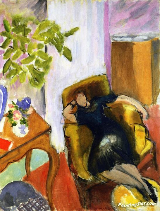 Young Girl In Black, In Yellow Armchair, Art Painting by Henri Matisse