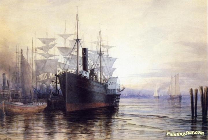 Sunset, New York Harbor, Art Painting by Henry Farrer