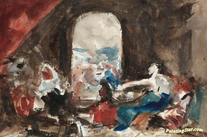 Figures in an Interior, Art Painting by Hercules Brabazon Brabazon