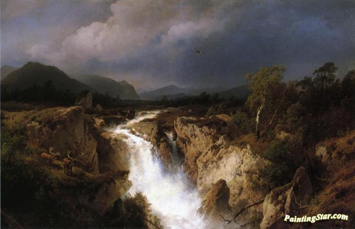 Landscape with Waterfall, Art Painting by Herman Herzog