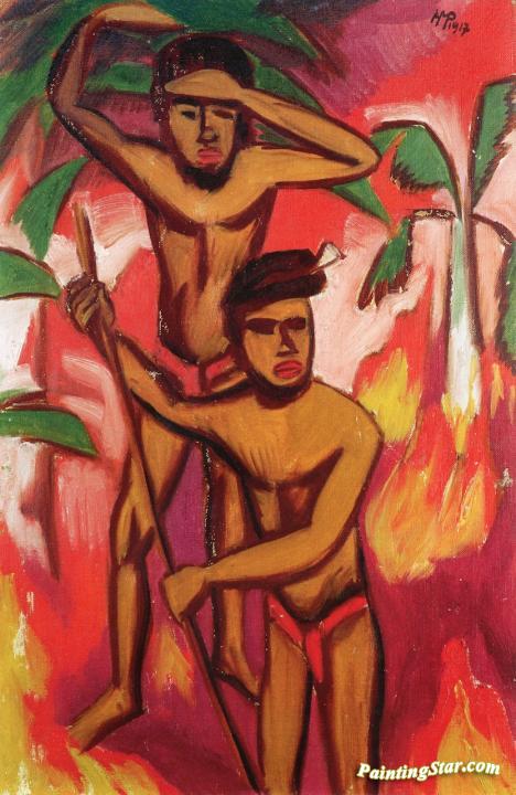 Two Aborigines, Art Painting by Hermann Max Pechstein