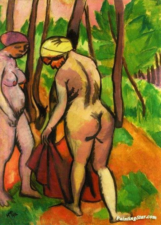 Two Nudes in a Forest, Art Painting by Hermann Max Pechstein