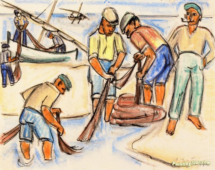 Washing the Fishing Nets, Art Painting by Hermann Max Pechstein