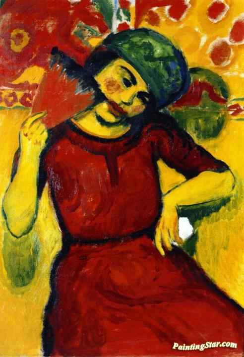 Young Woman With Red Fan, Art Painting by Hermann Max Pechstein