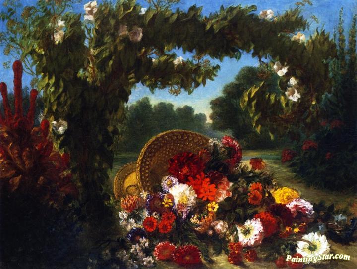 A Basket of Flowers Overturned in a Park, Art Painting by Eugène Delacroix
