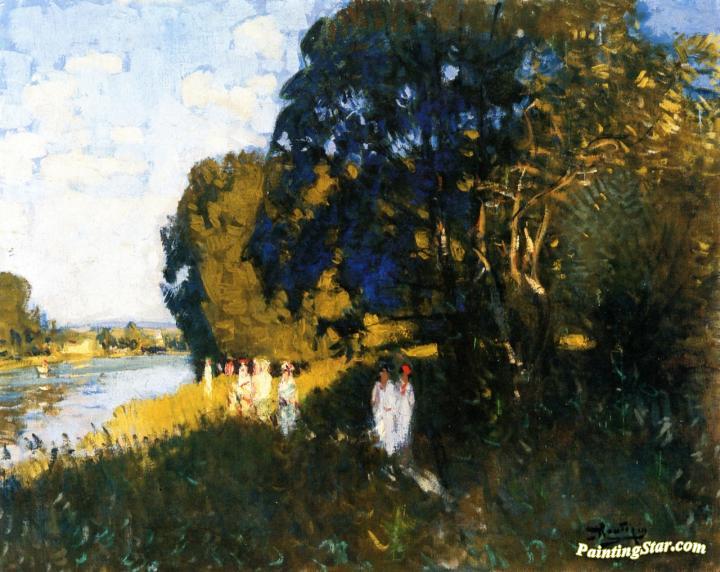 A Beautiful Sunday on the Banks of the Seine, Art Painting by Pierre Eugène Montézin