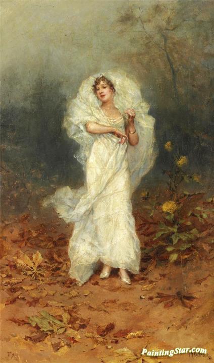 A Bride in a Fall Landscape, Art Painting by Frederik Henrdik Kaemmerer