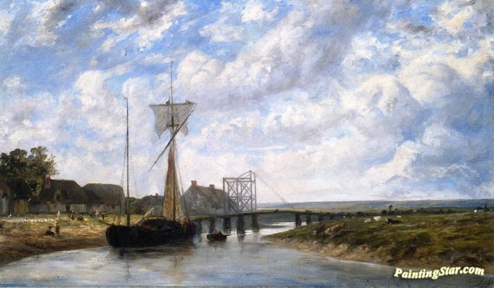 A Bridge over the Touques near Trouville, Art Painting by Paul Huet