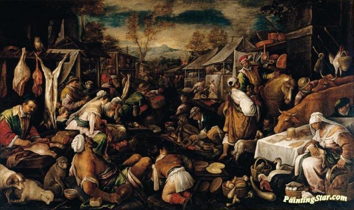 A Busy Market Scene with Meat and Vegetable Sell, Art Painting by Francesco Bassano the Younger