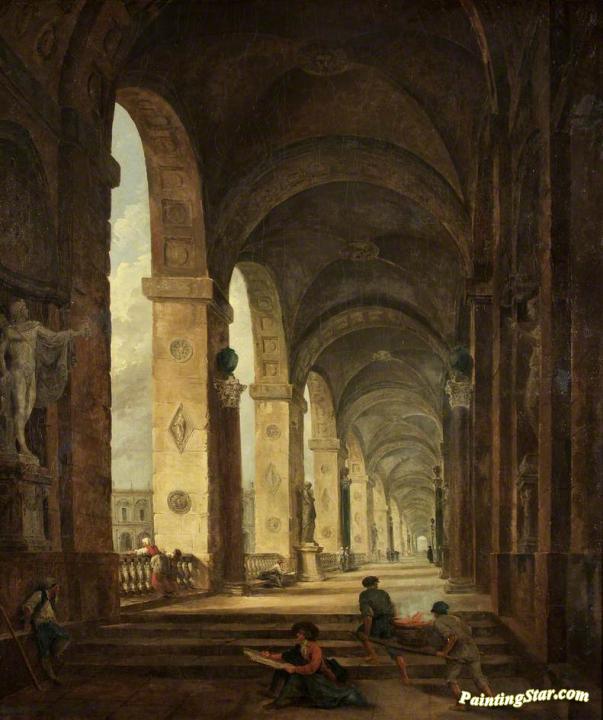 A Capriccio of Roman Architecture, Art Painting by Hubert Robert
