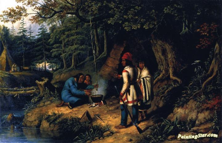 A Caughnawage Indian Encampment, Art Painting by Cornelius Krieghoff
