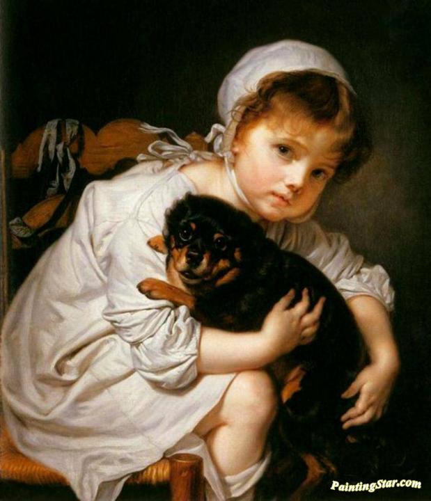 A Child Holding A Spaniel, Art Painting by Jean-Baptiste Greuze
