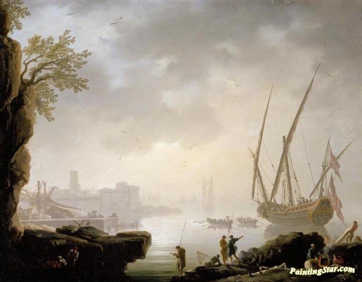 A Coastal Landscape with a Harbour in the Early Morning, Art Painting by Claude-Joseph Vernet