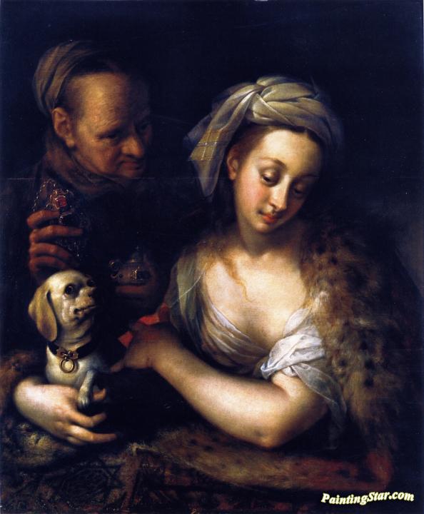 A Courtesan with Her Procuress, Art Painting by Hans von Aachen