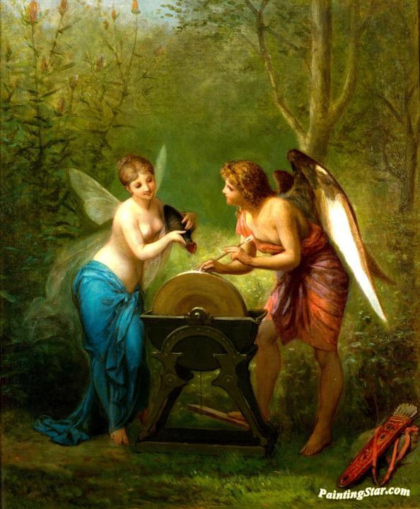 A Cupid And A Fairy Sharpening The Arrows, Art Painting by Henri Pierre Picou
