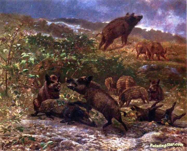 A Family of Wild Boar, Art Painting by Karl Bodmer