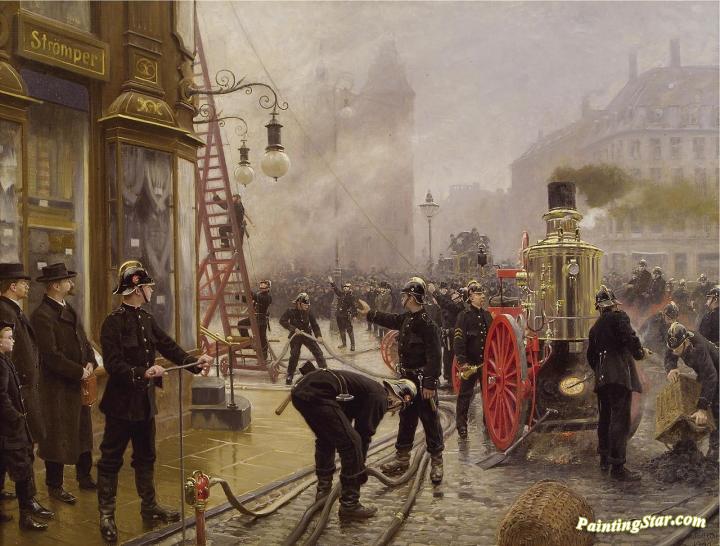 A fire on Kultorvet, Art Painting by Paul Gustave Fischer