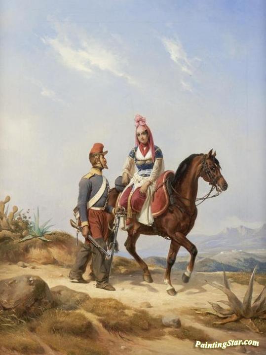A Footsoldier and Maiden Riding Sidesaddle, Art Painting by Niels Simonsen