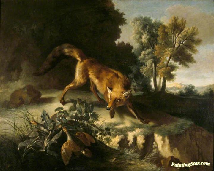 A Fox Stalking A Brace Of Partridges, Art Painting by Jean-Baptiste Oudry
