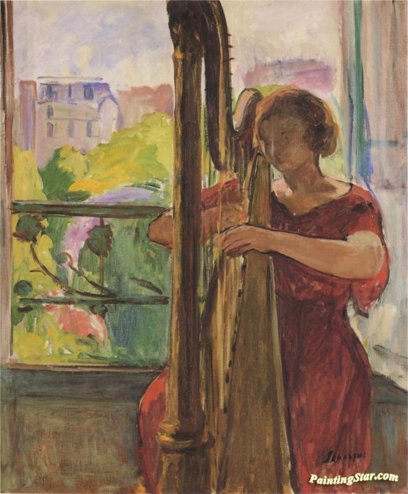 A girl playing a harp, Art Painting by Henri Lebasque