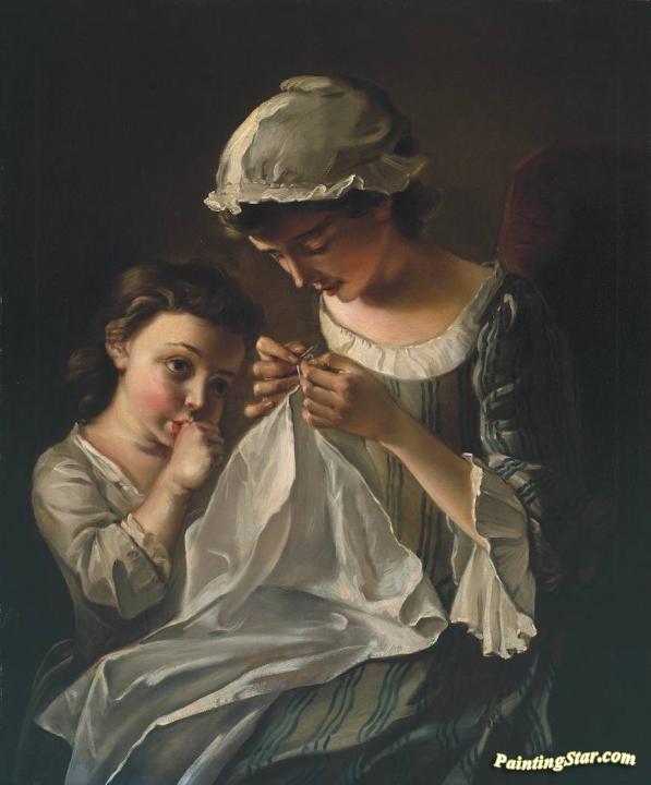 A Girl Sewing, Art Painting by Philippe Mercier
