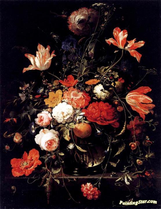A Glass of Flowers and an Orange Twig, Art Painting by Abraham Mignon