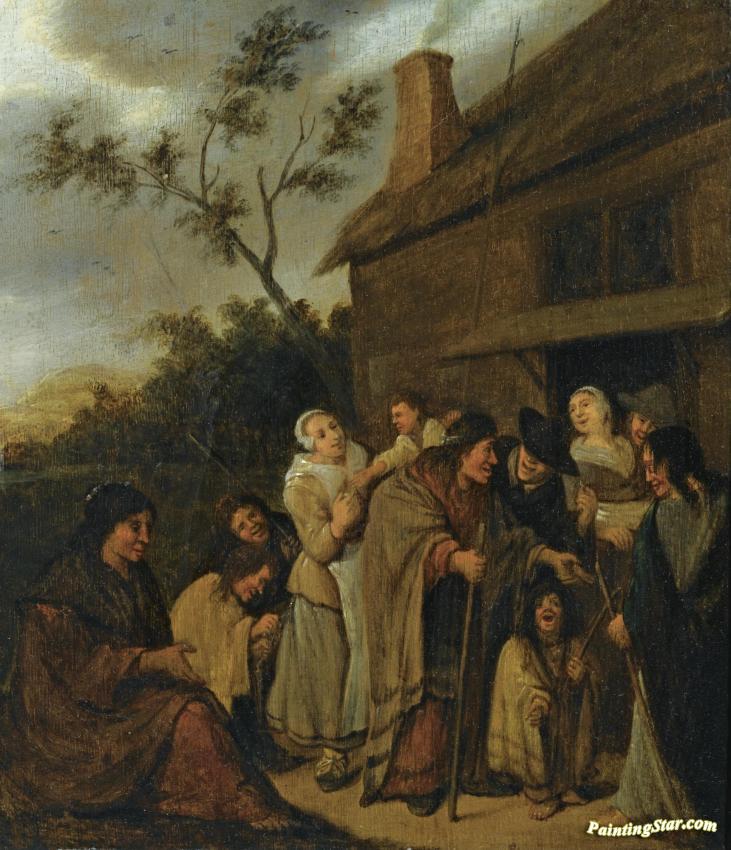 A Group Of Beggars Outside A Tavern, Art Painting by Jan Miense Molenaer