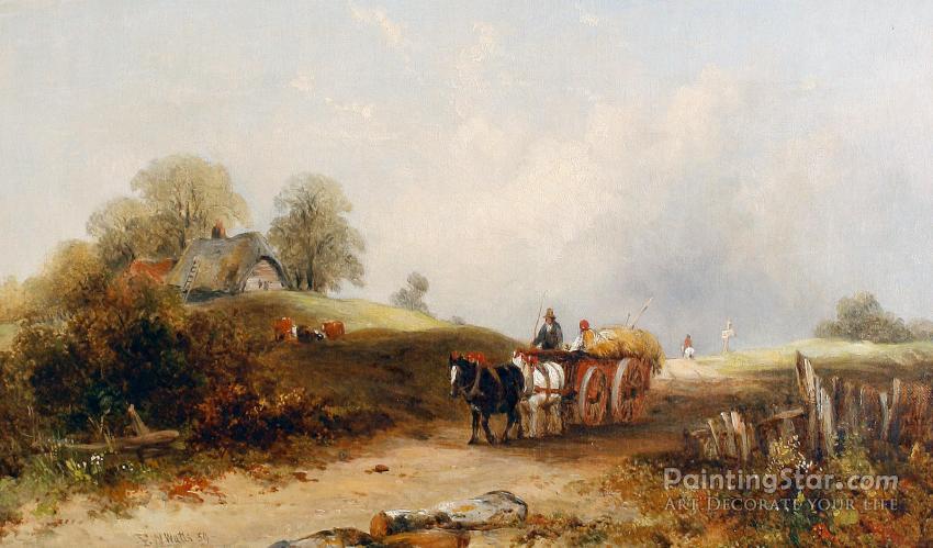 A Haywain On A Lane Near Norwich, Art Painting by Frederick Waters Watts