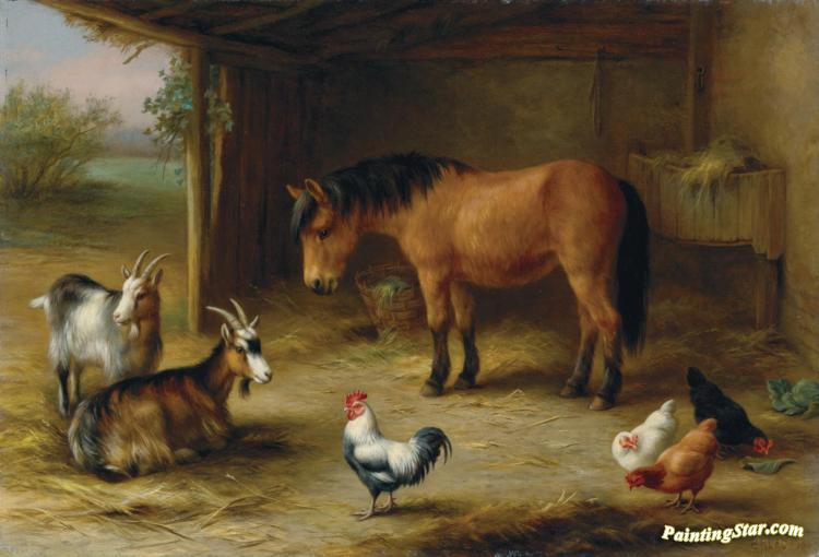 A Horse With Pigeons At Feeding Time, Art Painting by Edgar Hunt