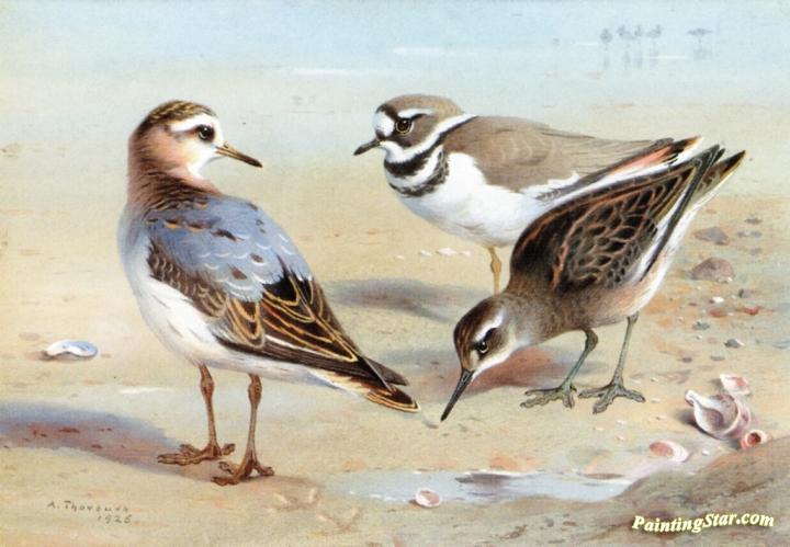 A Knot, A Sandpiper and a LIttle Ringed Plover, Art Painting by Archibald Thorburn