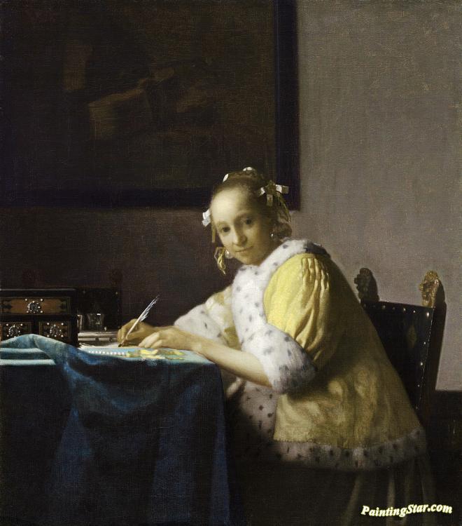 A Lady Writing A Letter, Art Painting by Johannes Vermeer