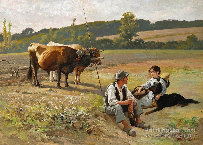 A Mid-day Repose In The Fields, Art Painting by Edouard Bernard Debat Ponsan