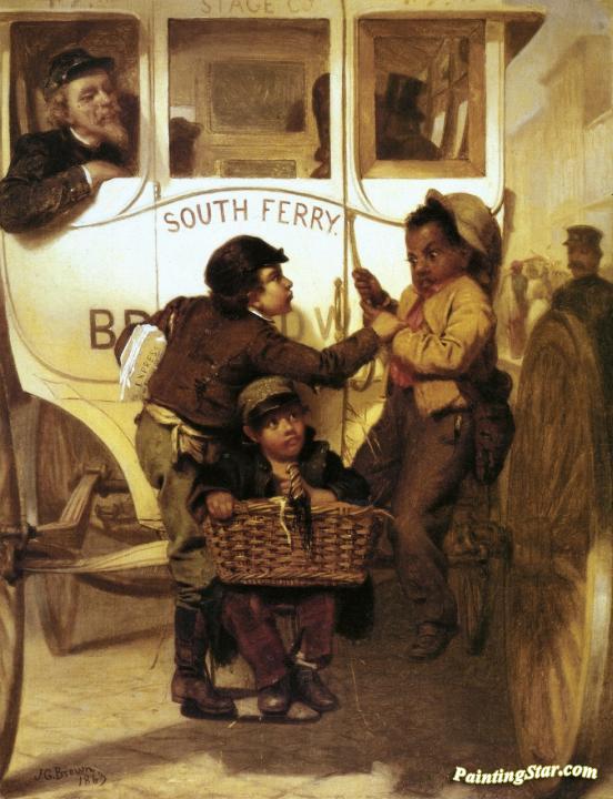 A Newspaper Boy Hitching a Ride, Art Painting by John George Brown