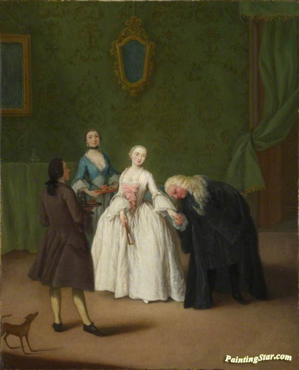 A Nobleman Kissing a Lady's Hand, Art Painting by Pietro Longhi