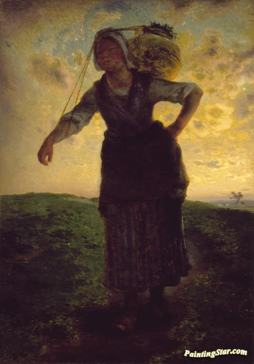 A Norman Milkmaid At Greville, Art Painting by Jean-François Millet