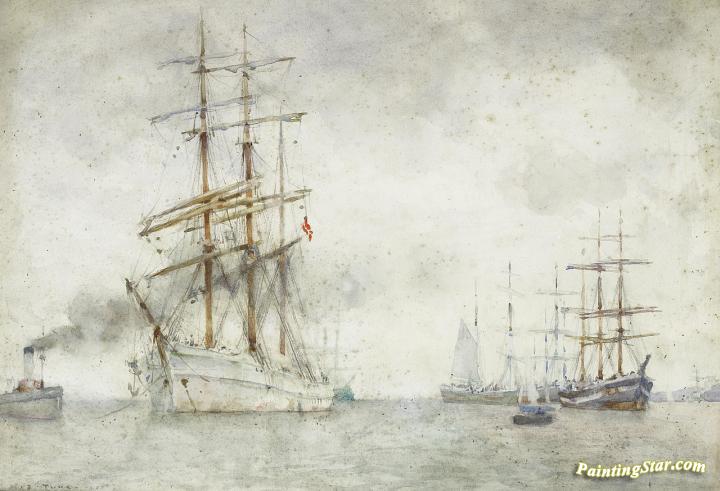 A Norwegian Windjammer In Falmouth Roads, Art Painting by Henry Scott Tuke