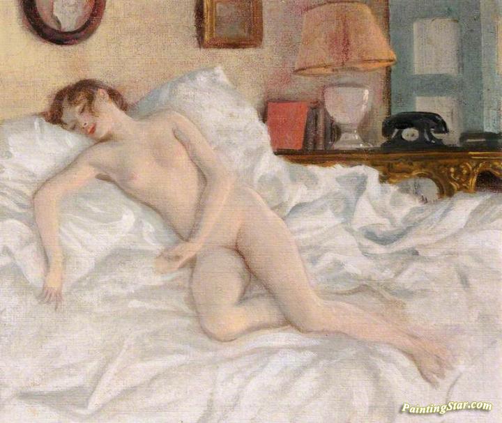 A Nude Study Of Lady Caroline Paget On A Bed, Art Painting by Rex Whistler