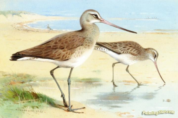 A Pair Of Black-tailed Godwit, Art Painting by Archibald Thorburn