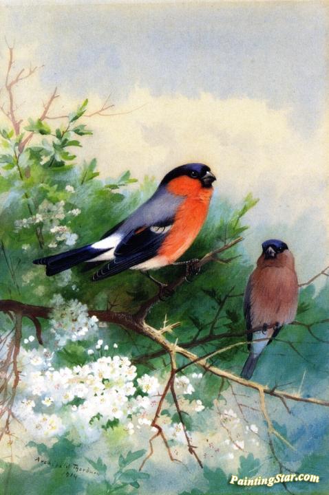 A Pair of Bullfinches, Art Painting by Archibald Thorburn
