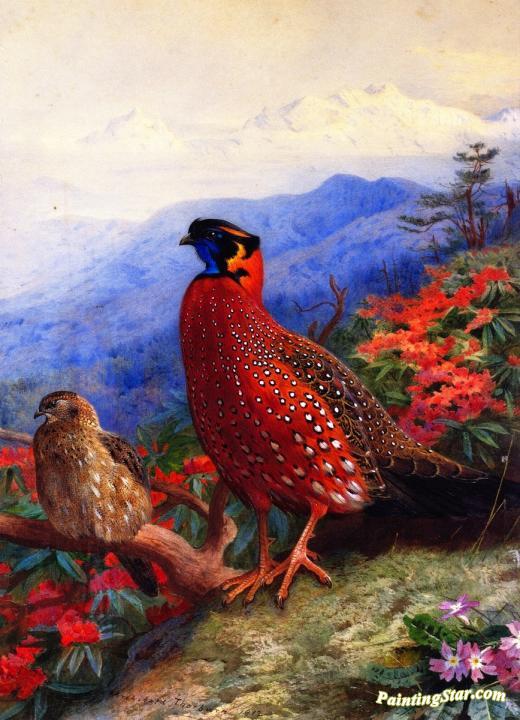 A Pair of Satyr Tragopans, Art Painting by Archibald Thorburn