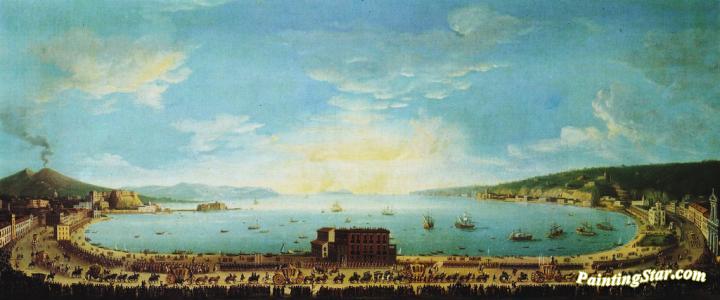 A panoramic view of the Bay of Naples, Art Painting by Antonio Joli
