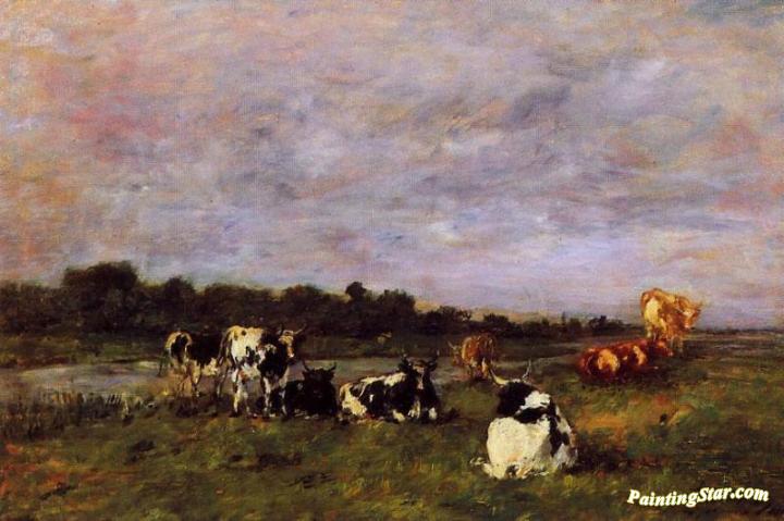 A Pasture on the Banks of the Touques, Art Painting by Eugène-Louis Boudin