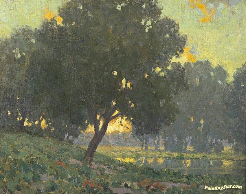 A Peaceful Pond At Sunset, Art Painting by Granville Redmond
